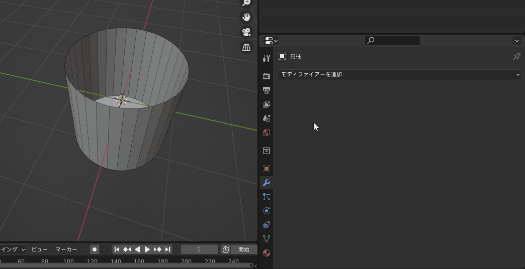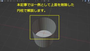 1.円柱の上面を削除するなどして厚みを与えたいオブジェクトを用意する。